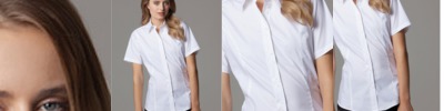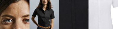 Smart and stylish shirt design in a fine poplin fabric with two fits available for both male (tailored and classic) and female (fitted and classic) styles. Concealed placket. Stylish yoke design. Darts on bust front hem and back panel for fitted shape. Decorative top stitch on darts. Fashionable cap sleeves. Rounded hem.