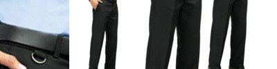 Mens flat front easy care hospitality trouser. Flat front, belt loops. D ring attached to front belt loop. Zip fly. Button with hook n’ bar fastening at waist. Rear jetted pocket. 2 swing hip pockets. Machine washable. Semi dull finish. 2x1 twill construction Size 30”, 32”, 34”, 36”, 38”, 40”, 42” Leg length Reg 31”, Long 34”