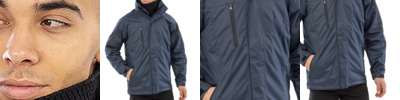 Top of the range, 3-way wear jacket. Breathable, water and wind proof protection. Soft, high stretch inner softshell jacket. Motor industry favourite. Matches R400F. Outer jacket: Full front 2-way zip. Tear release outer double storm flap with studs. Front and chest zip pocket. Elasticised cuff with tear release adjuster. Removable and adjustable lined hood with reflective peak. Adjustable shock cord hem. Ripstop detail fabric. Tricot lined collar. Taped seams. Secondary inner zip to attach. Softshell inner jacket: Full front zip. Inside and front side pockets. Straight edge cuff.Decoration Guidelines:Decorating methods: Embroidery & Transfer print Decorators access point: Inside left chest & back Inner : Open.