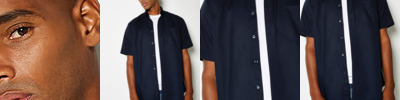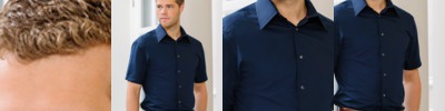Soft fused mandarin collar. Easy iron. Doubled folded side and sleeve seams. Concealed placket. Two pleats at back yoke. Single needle stitched yoke and armholes. Shirt tail hem. Spare button. Woven label.