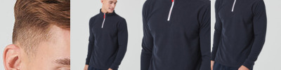 1/4 zip long sleeved polar fleece top with contrast zip and piping detail. Set in sleeves. Anti pil one side